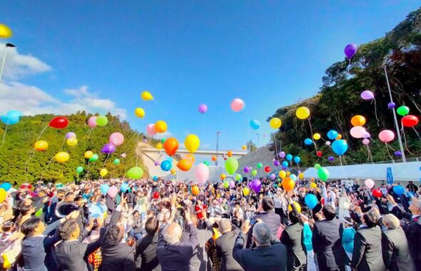 背景には、世界三大夜景の長崎市の街を見渡せる稲佐山の美しい稜線、世界遺産「ジャイアント・カンチレバークレーン」、堂々たる護衛艦、そして三菱重工業長崎造船所。