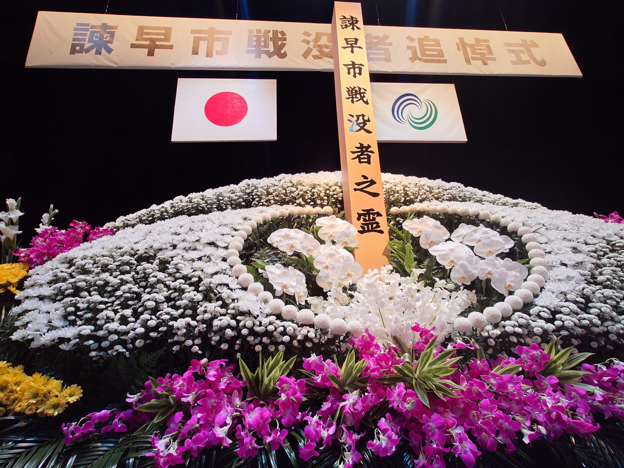 諫早文化会館において大久保潔重市長の式辞のもと、遺族や来賓の皆さま約150名が参列しました。