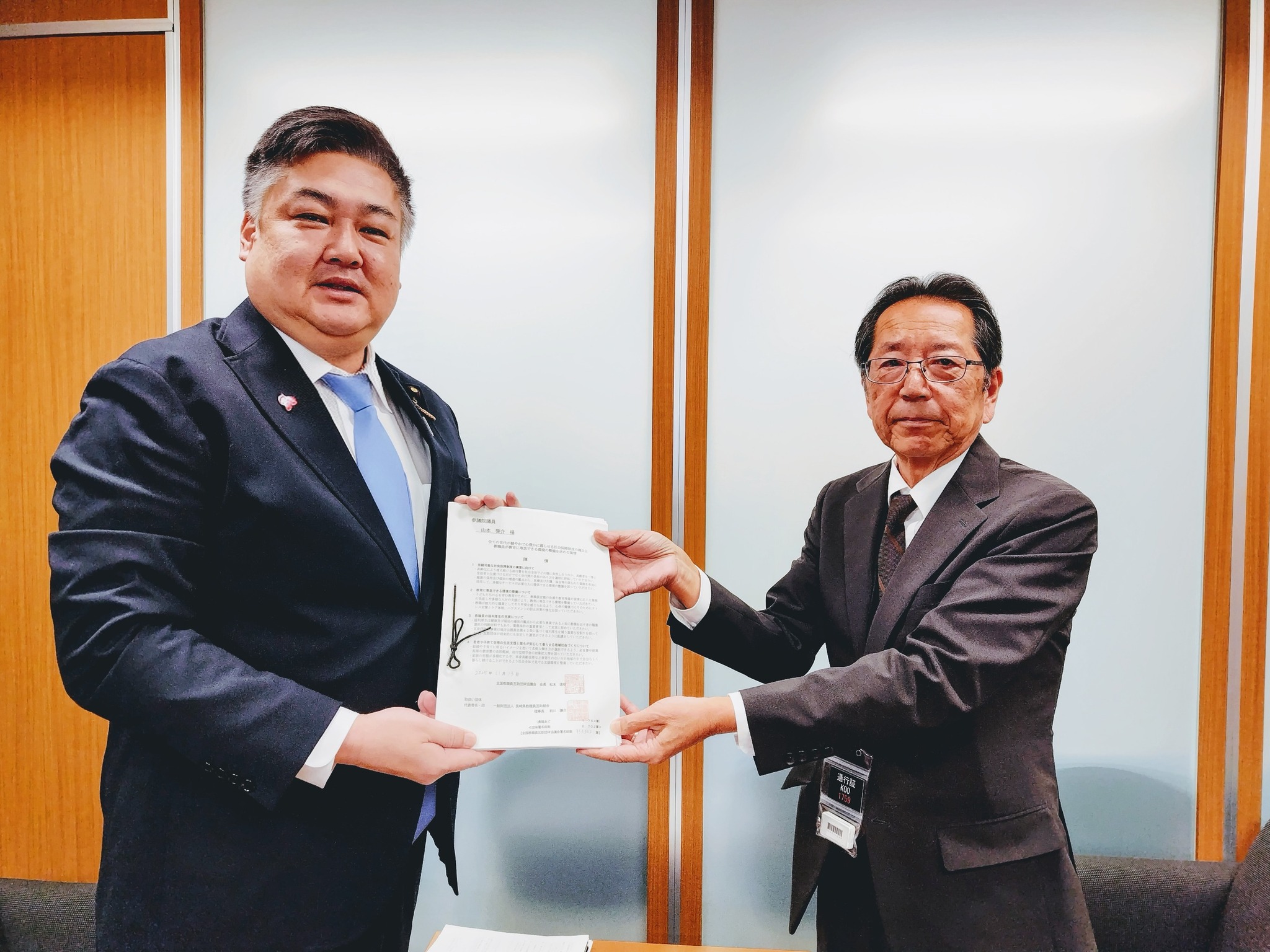 一般財団法人 長崎県教職員互助組合の皆さまから、社会保障制度の充実と、教職員が教育に専念できる環境整備を求める陳情書と、多くの署名を受け取りました。