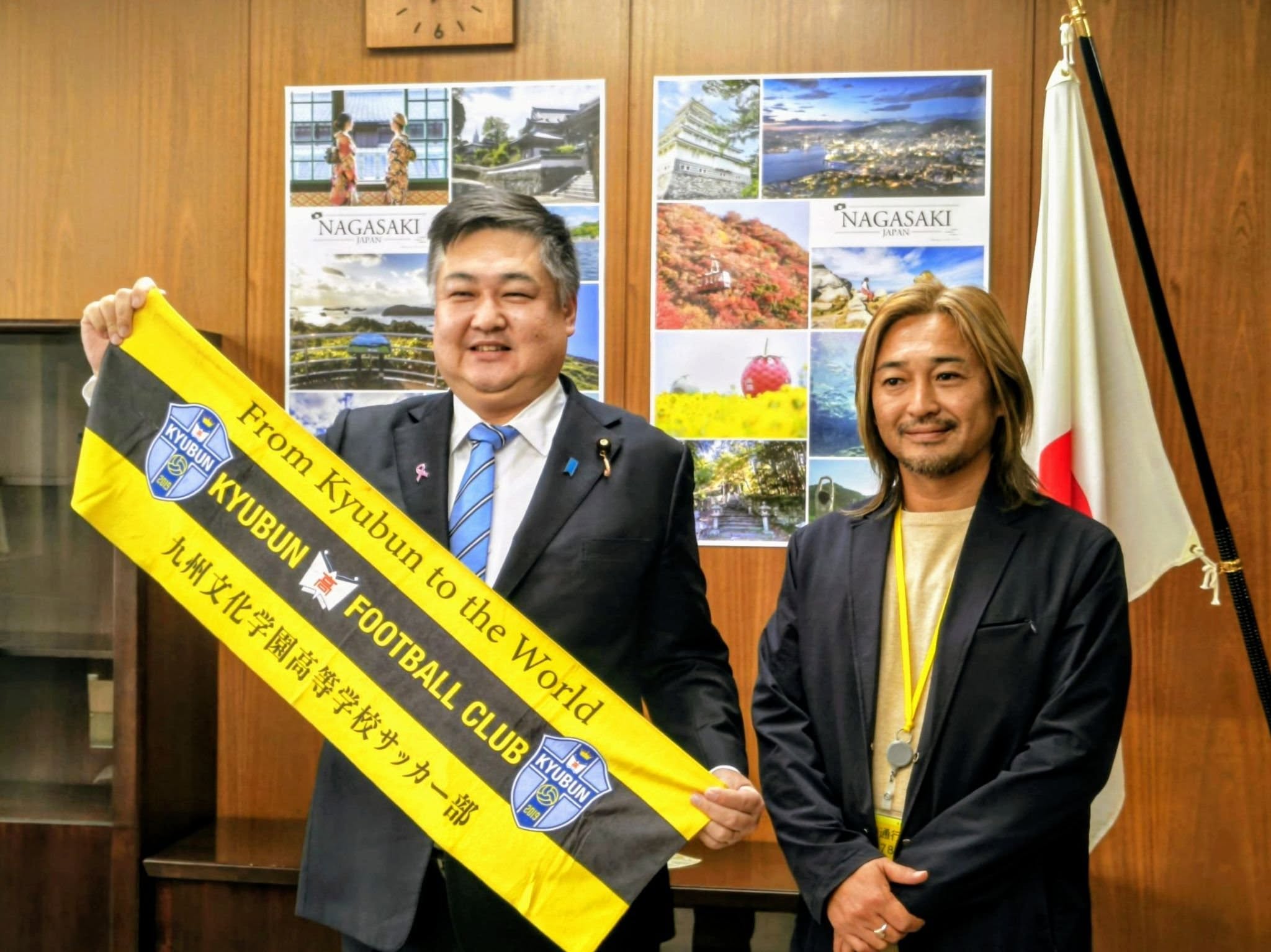 九州文化学園高校サッカー部の有光亮太監督が政務官室に表敬訪問してくださいました。