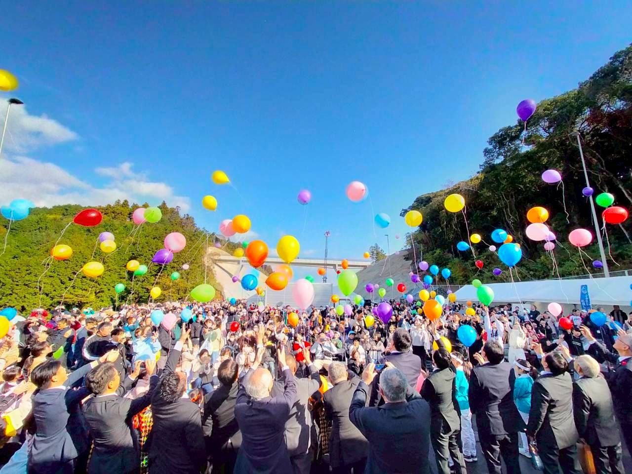 完成後、高速道路の上を歩くことはほとんどありません。しかし、太鼓の力強い音、青空に舞い上がる風船、世代を超えて集った人々の温もり、この日の風景は、きっと心に残り続けることと思います。